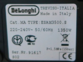 Hersteller: DeLonghi | Typ-/Modell: EAM 3500.S - Pronto Cappuccino | ca. Baujahr: 2009