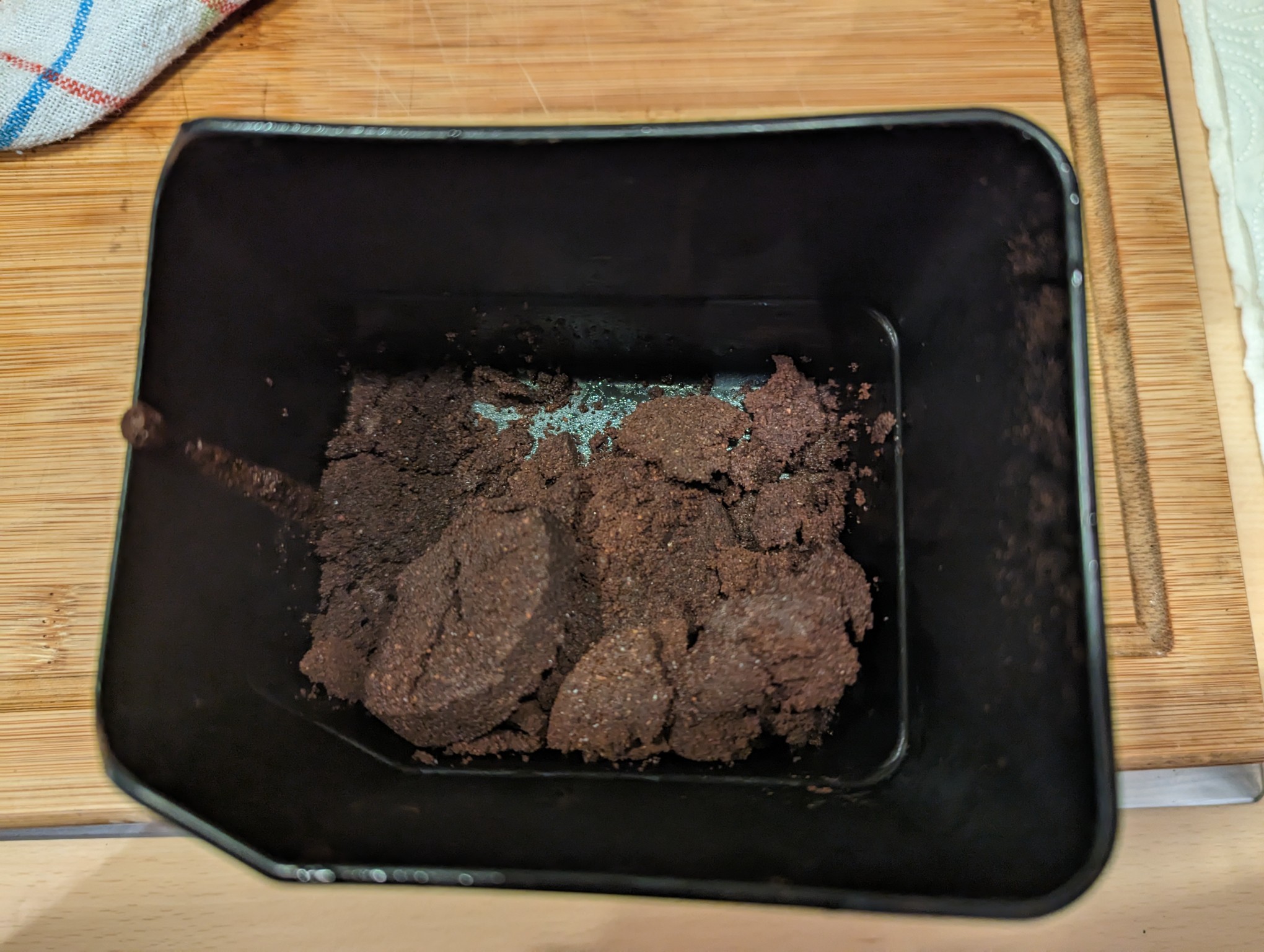 Und der Mahlgrad wird auch noch zu grob sein, sonst würde das Pulver nicht so extrem feucht sein und kleben.