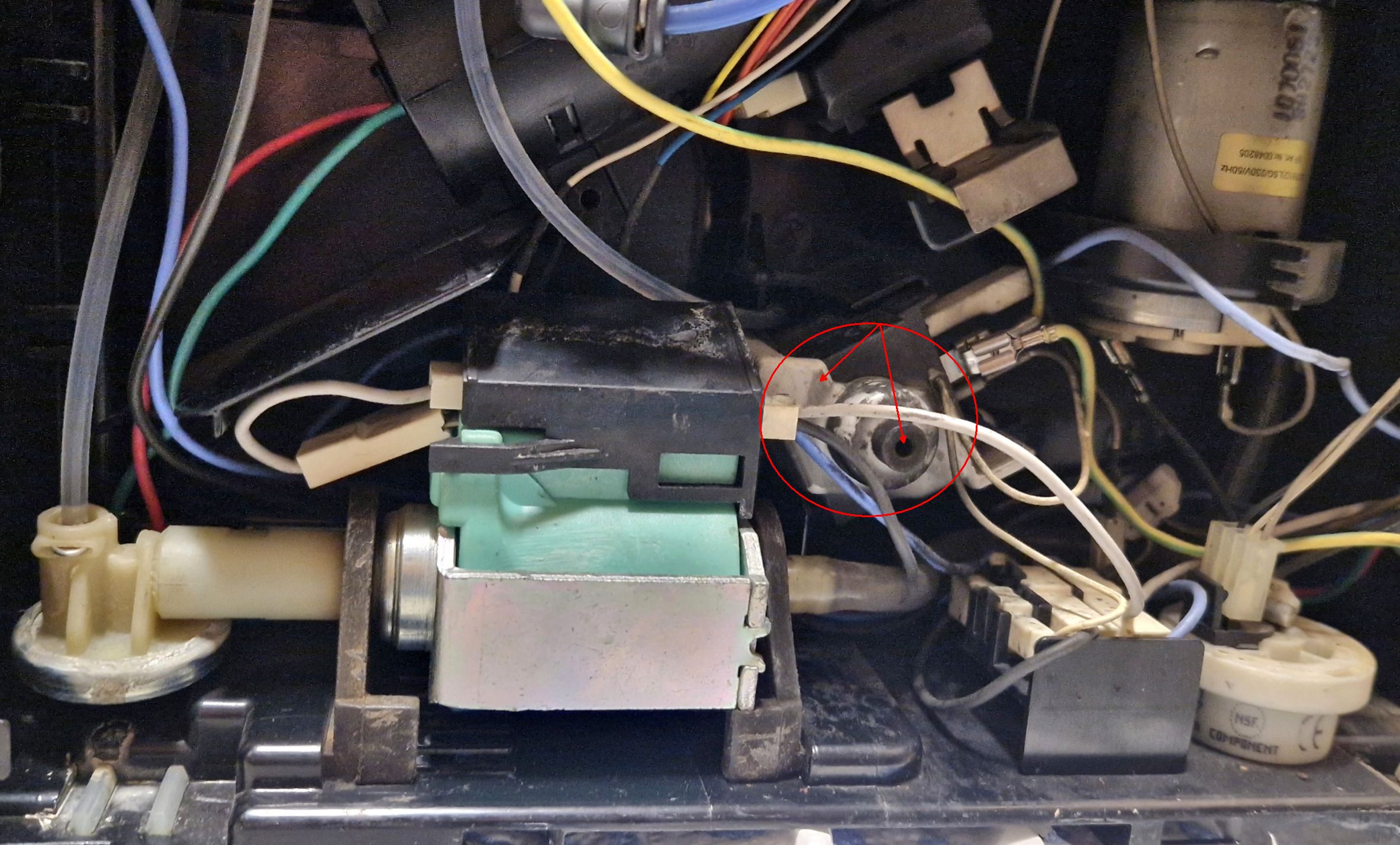Wir haben die Maschine aufgeschraubt und konnten Wasser unter der Pumpe feststellen. Ein Foto des Innenraums ist angehängt.