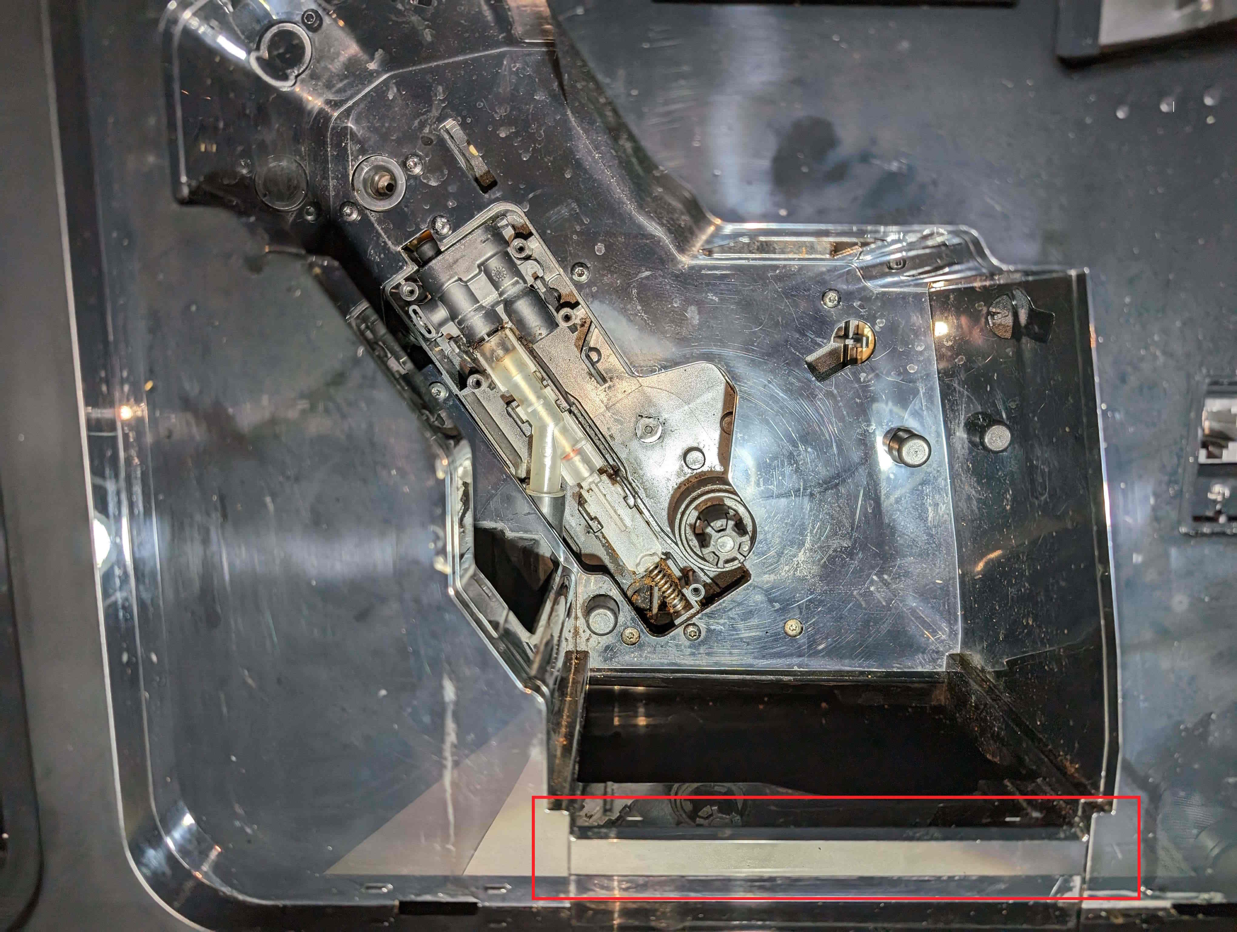 bei dem Versuch Kaffee zu beziehen, landet dass Wasser leider in der Auffangschale. Ich tippe mal auf das Auslaufventil oder Drainageventil. Um dort eine Reparatur durchzuführen, muss ich das Gehäuse öffnen. Leider gibt es hier noch keine Anleitung für dieses Modell.