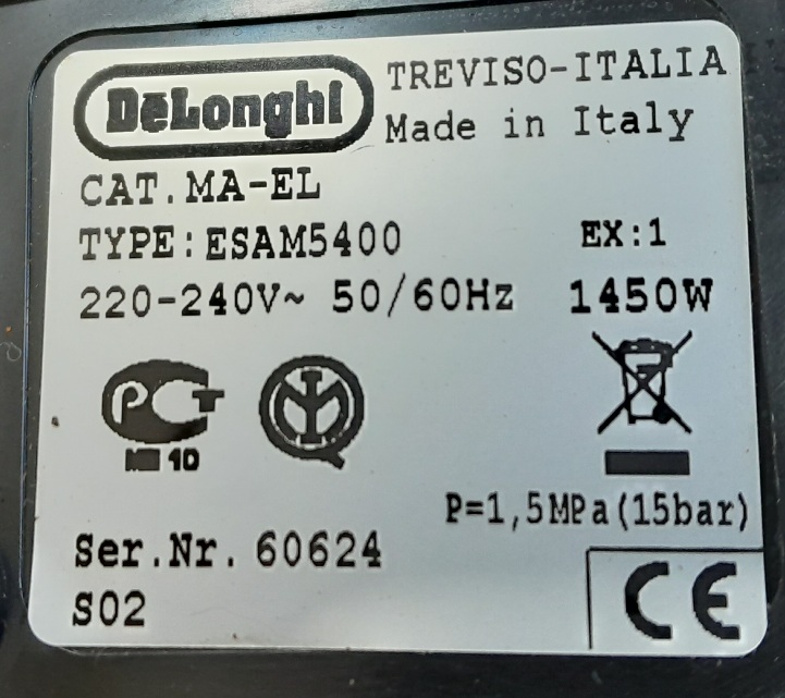Hersteller: DeLonghi | Typ-/Modell: ESAM 5400 EX-1 - Perfecta | ca. Baujahr: Unbekannt