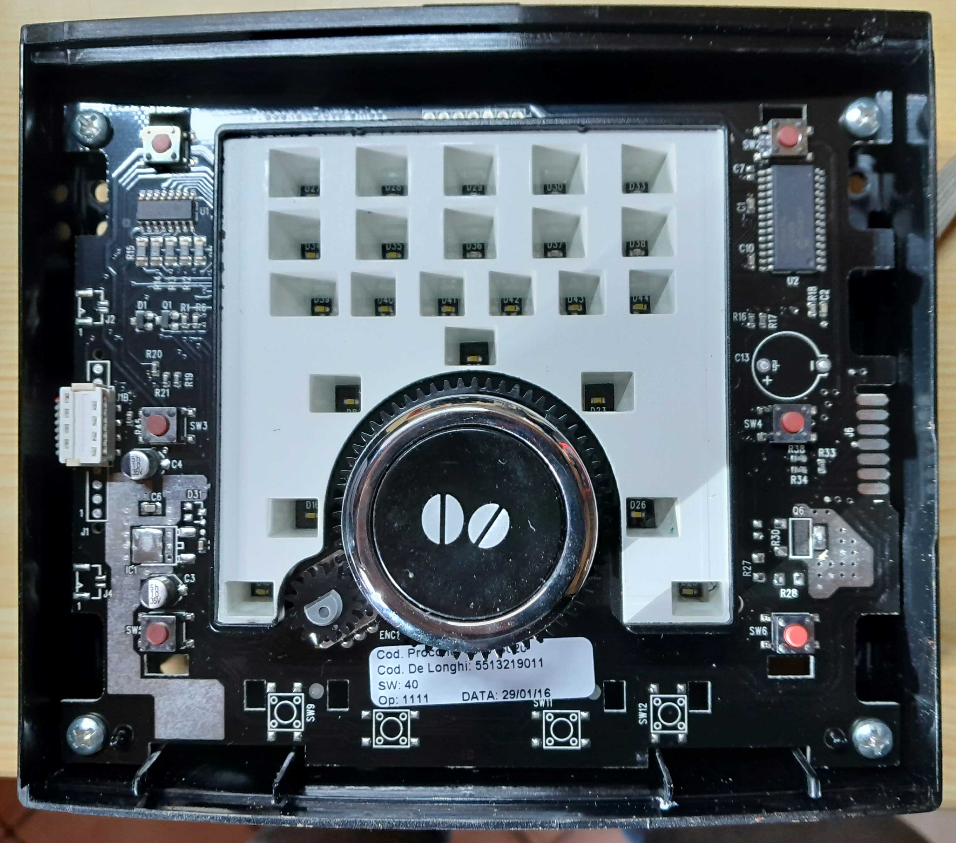 Nach dem Einschalten des Schalters an der Rückwand läuft der Motor für die Brühgruppenspindel kurz an und dann gleich wieder zurück, also die Brühgruppe in die unterste Position. Dann rührt sich nichts mehr. Das Display bleibt die ganze Zeit über dunkel - da rührt sich gar nichts. Auch auf Knopfdrücke keinerlei Reaktion.