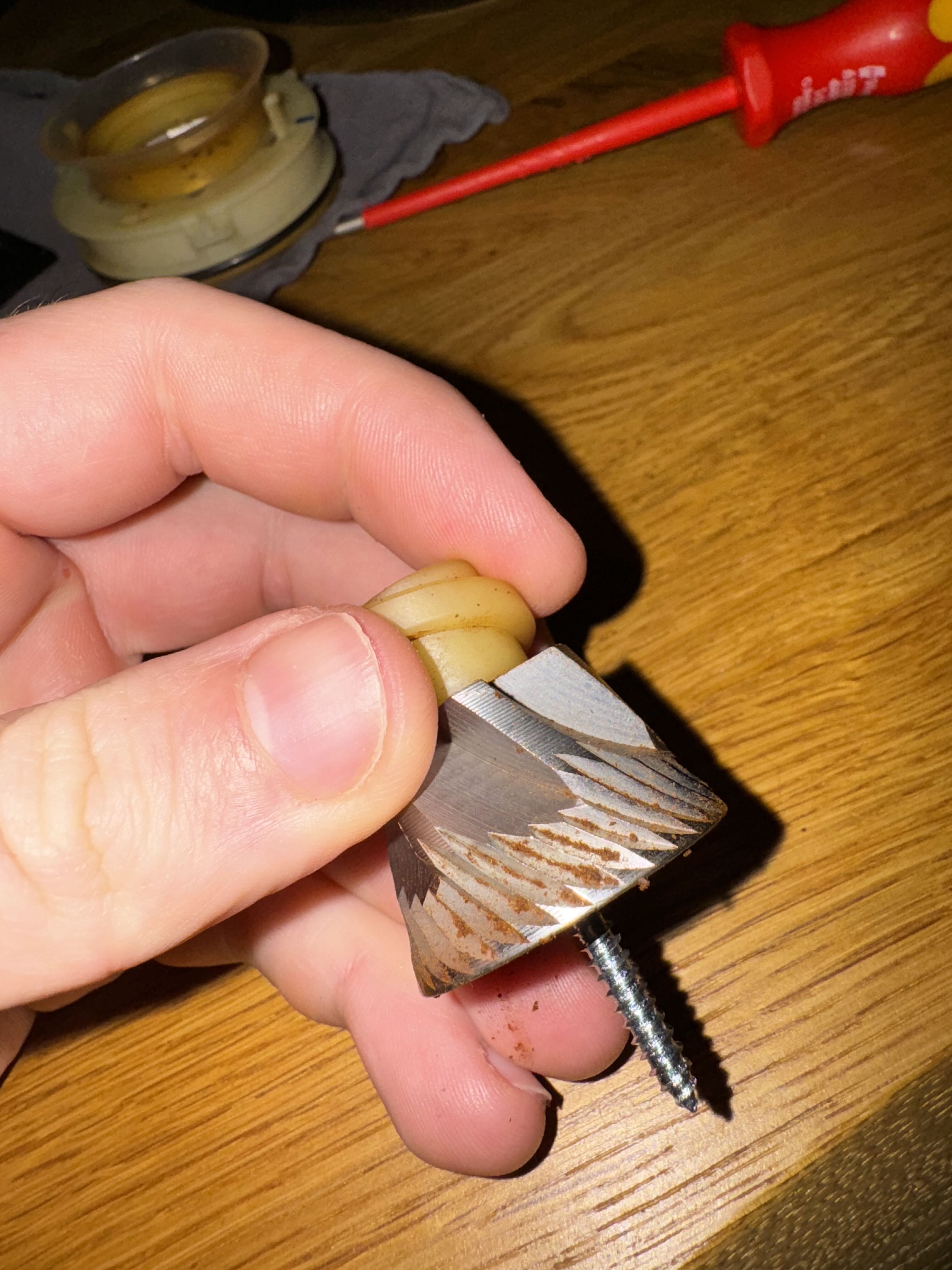 Auf jeden Fall hat irgendwas nicht gestimmt, denn: Nach dem erneuten Zusammenbau bleibt der Mahlgrad konstant und lässt sich einstellen.