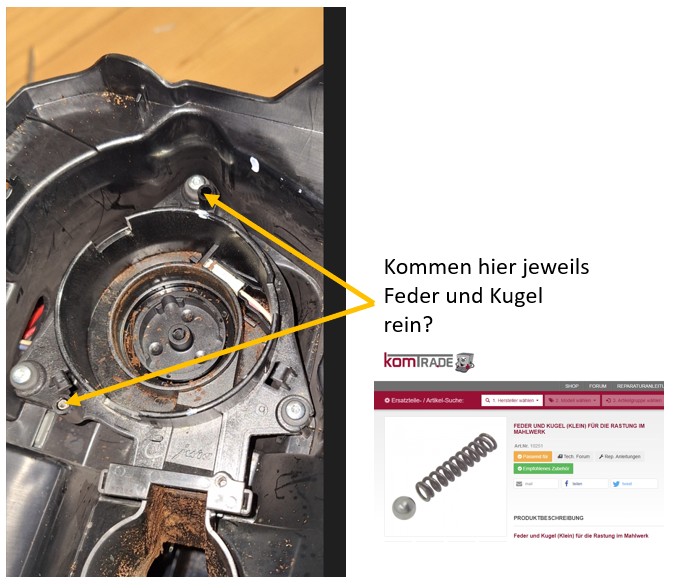 ich bin dabei unsere Jura E8 zu revidieren. Beim Ausbau des Mahlwerks ist mir die Feder und Kugel für die Rastung des Mahlwerks verloren gegangen.
