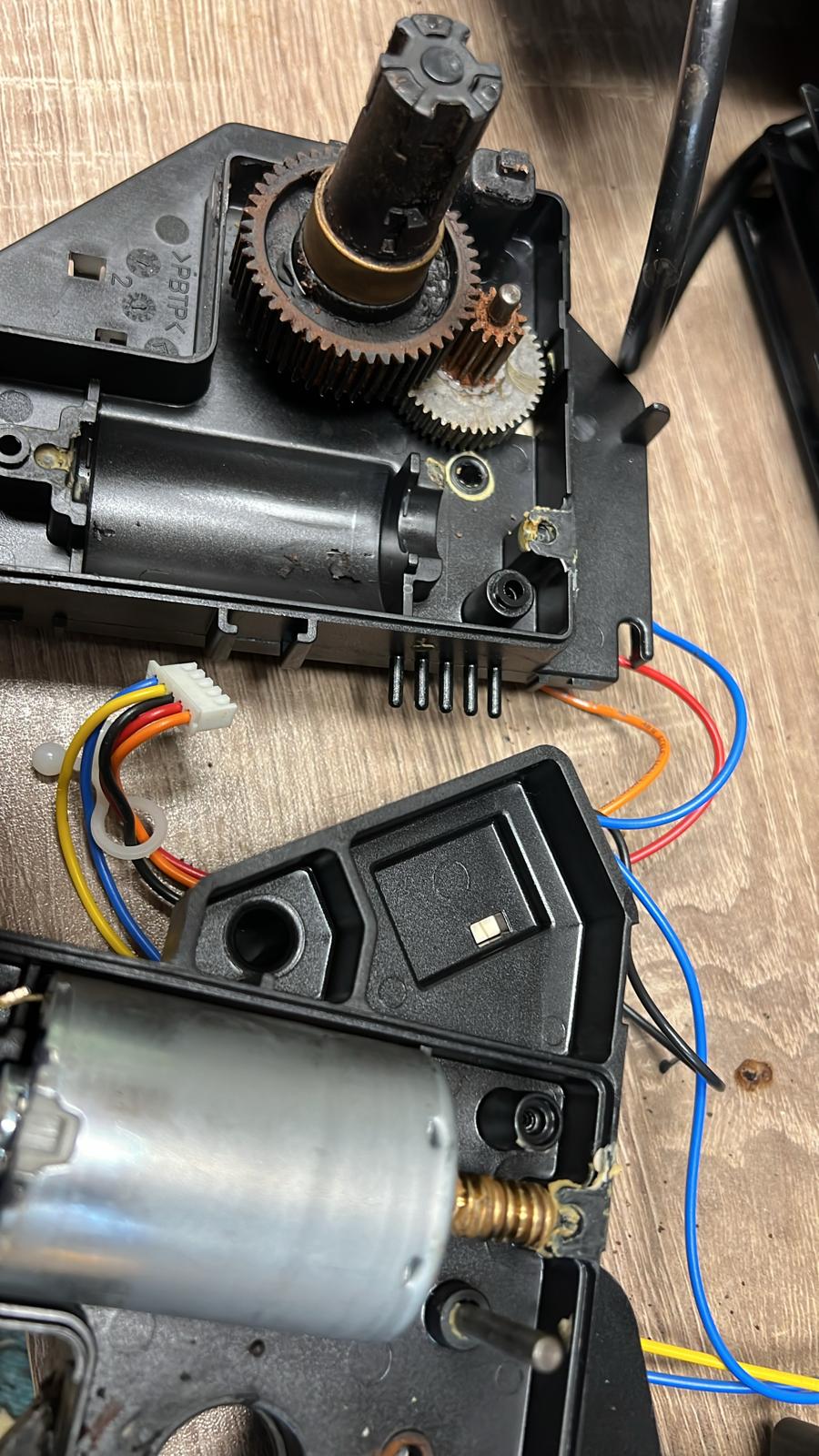 habe den Antrieb geöffnet das Metallzahnrad ist rostig die Welle ist auf der Microschalterseite nur mit dem Hammer zuentfernen