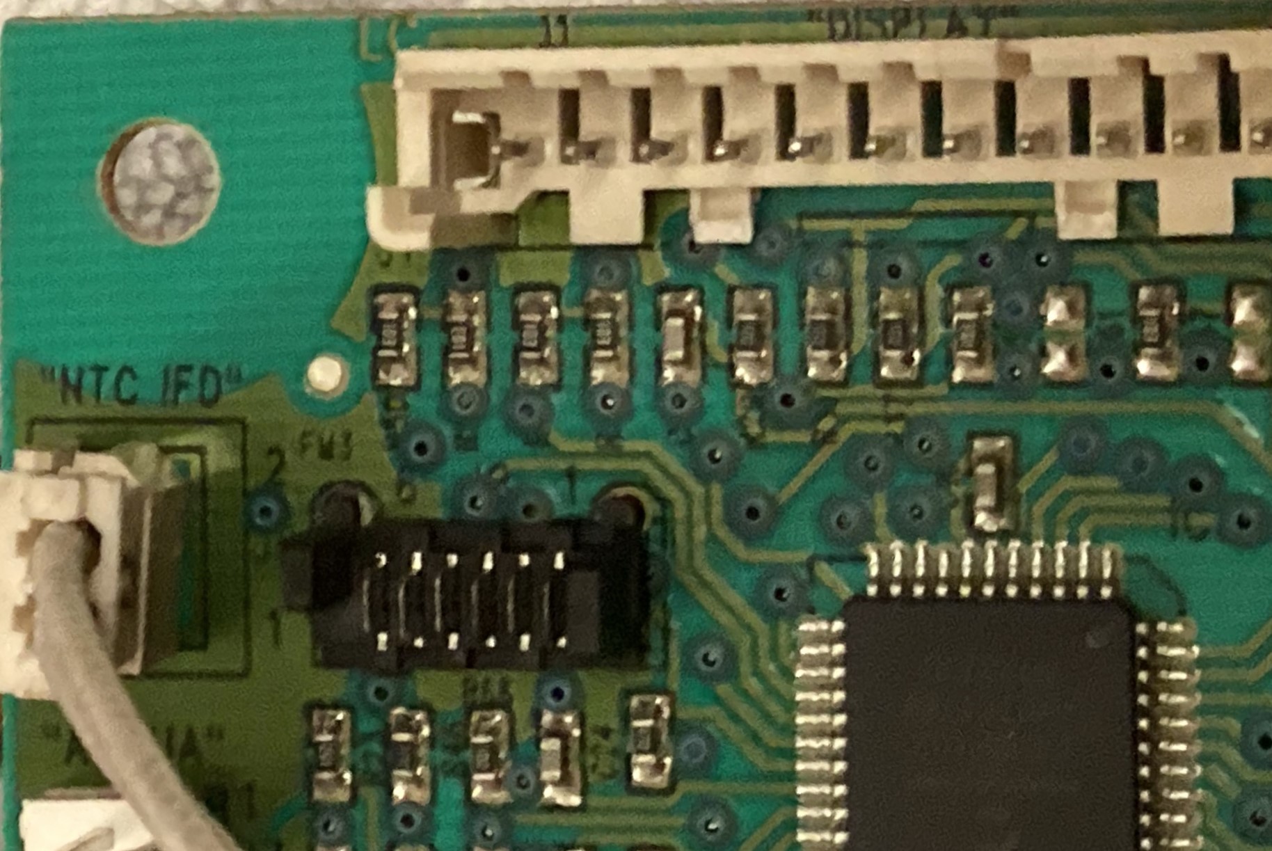 Der Fühler geht mit zwei mit Seide ? isolierten Drähten auf einen zweipoligen Miniarurstecker. Dort ist " NTC IFD" aufgedruckt.