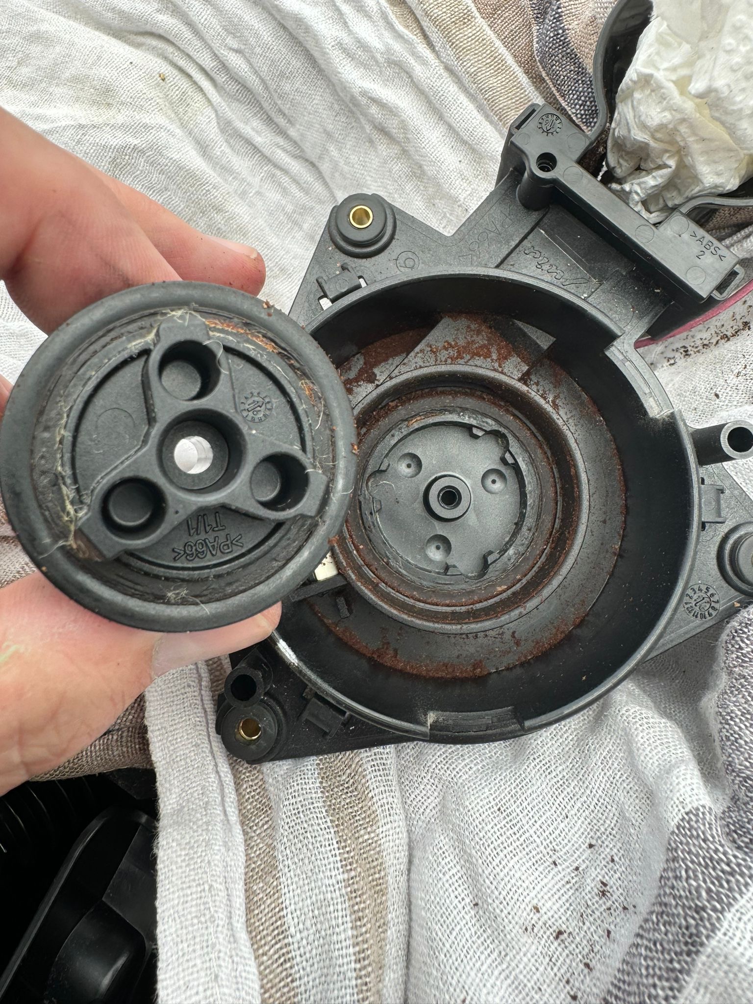 • Update: ich habe jetzt die neuen Mahlscheiben da… dabei habe ich festgestellt, dass ich scheinbar doch noch nicht bei dieser Maschine das Mahlwerk ausgebaut hatte… Ich bin jetzt etwas überrascht, da es doch anders ist als bei meinen anderen Juramaschinen.: