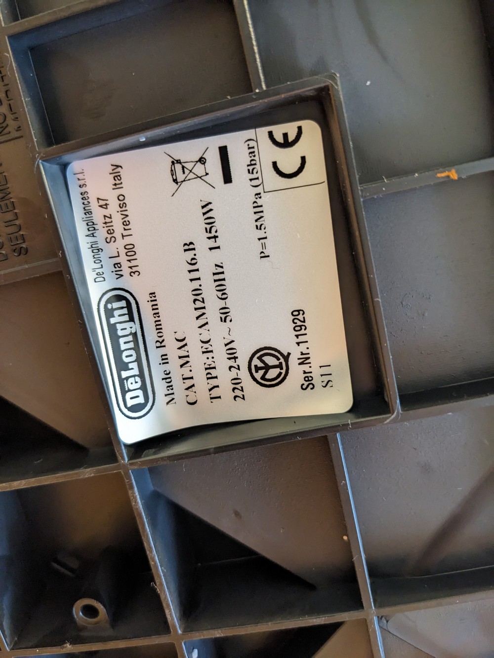 Hersteller: DeLonghi | Typ-/Modell: Bitte auswählen... ECAM 20.116B | ca. Baujahr: 2022