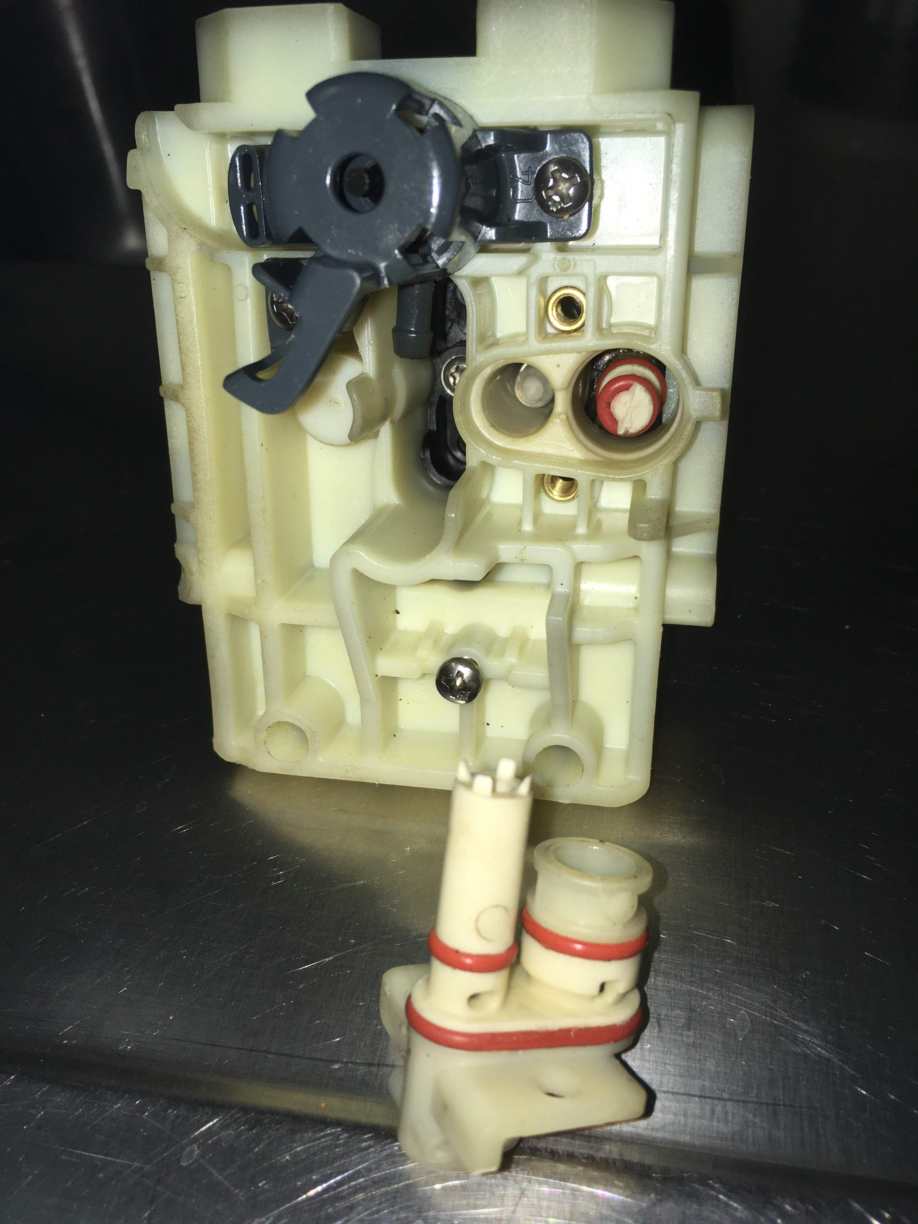 Ich bin mir sehr sicher, das ein Fehler am mechnischen Umschaltventil im oberen Brühkolben vorliegt siehe meine Fotos von gestern.