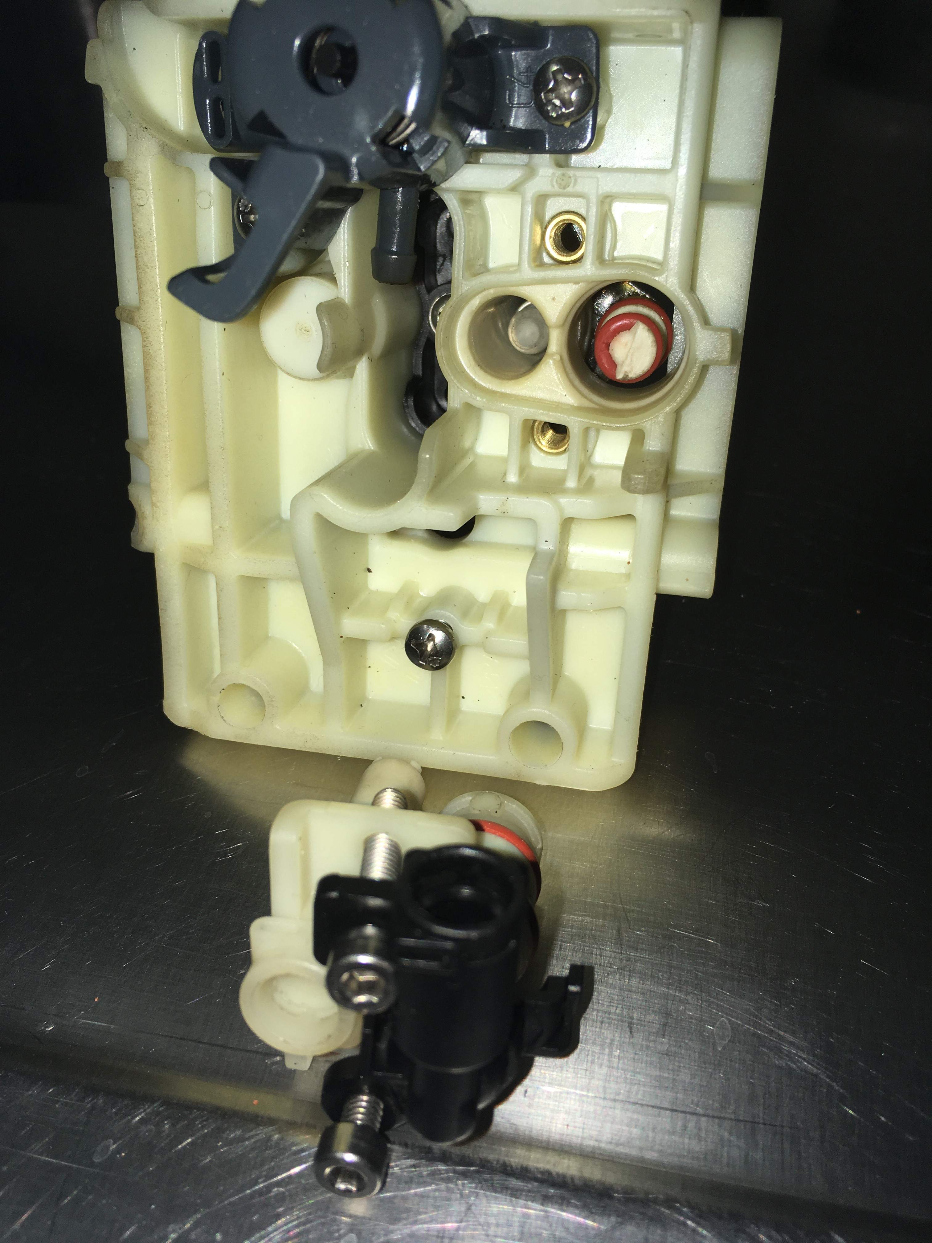 • Habe gerade zerlegt und gesehen das der schwarze Schlauch nicht ganz unten drin war. Ganz vorsichtig gefragt könnte das vielleicht schon die Ursache sein ? Kommt vom oberen Ventil