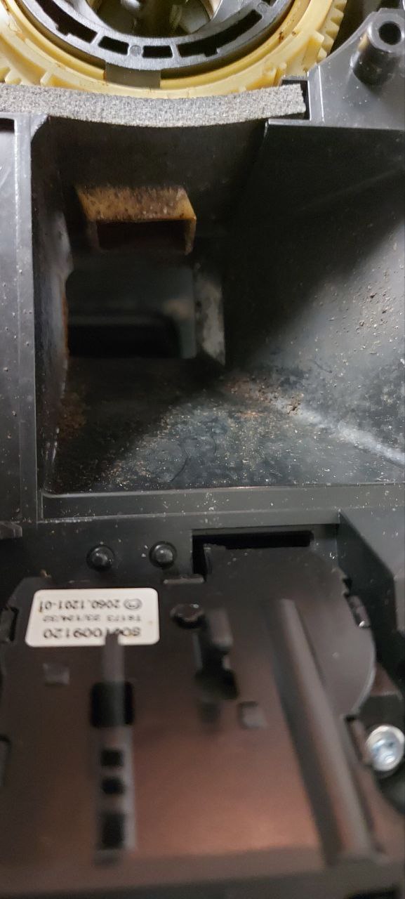 • Ich habe mit diesen Maschinen wenig Erfahrungen, aber jede der Maschinen sah im Mahlwerksschacht bereits nach drei Jahren wesentlich übler aus als diese. Ich gehe deshalb davon aus, das der Schacht schon gereinigt wurde.