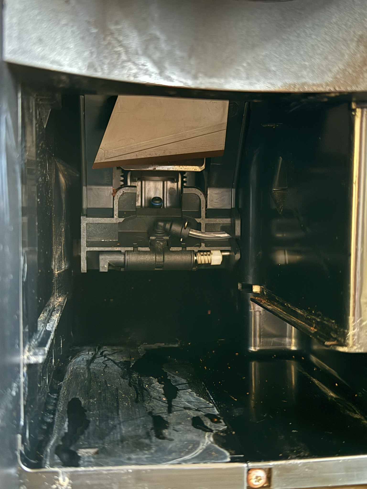 Nach dem Wiederanschließen: Kaffeepulver fällt gefühlt trocken in die Schale & keine Flüssigkeit kommt aus dem Auslauf.