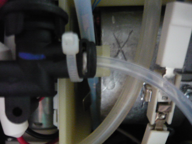 zwei Schläuchen - einmal um einen Gewebeschlauch mit einer Klemmfeder und einem normalen
