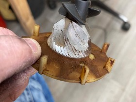Der Propeller sitzt fest auf dem Mahlkegel, der Mahlkegel sitzt fest auf der Kunststoffscheibe und lässt sich scheinbar alles nicht demontieren.