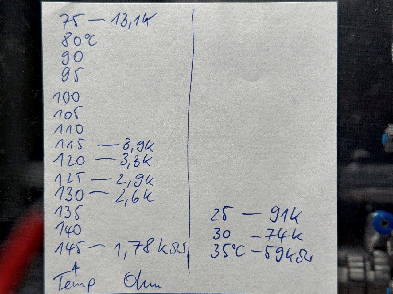 Sporadisch weiter gemessen bis runter auf 25°C mit einem dazugehörigen Wert von 91kOhm.