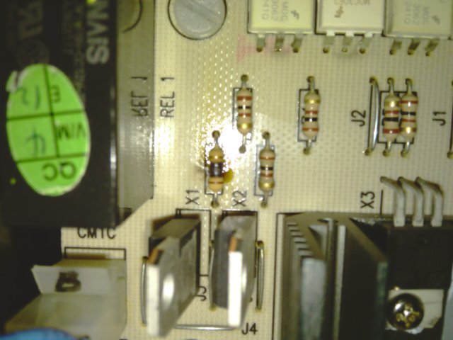 Die Mühle hat sich gequält angehört und danach ist der Widerstand X1 (braun/schwarz/braun) durchgebrannt.