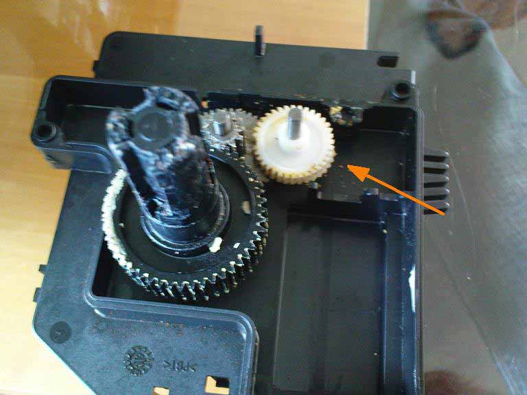 Dann habe ich mich daran gemacht, die festsitzende Brühgruppe zu öffnen, aber die hängt dann zuletzt an einer 'Kunststoffhalteklammer' (siehe Foto) in der rechten oberen Ecke, die von der Innenseite verschraubt ist...