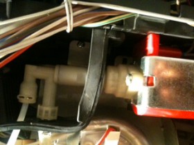 Aus dem Verteiler gehen 2 Schläuche weg, 1 über ein elektr. Ventil und Erhitzer zum Kaffe brühen und der Andere zu einem separaten Erhitzer zum Heißwasser/ Dampf beziehen. Dieser teilt sich dann vor dem Erhitzer noch einmal und führt in den Trester