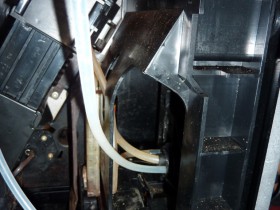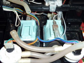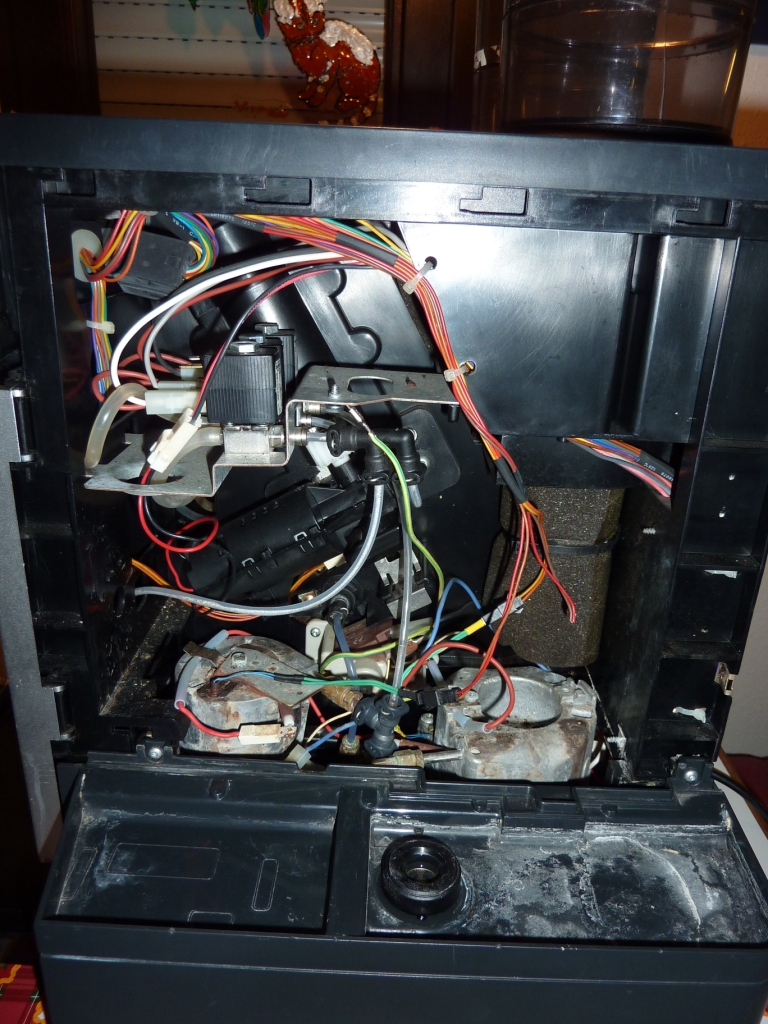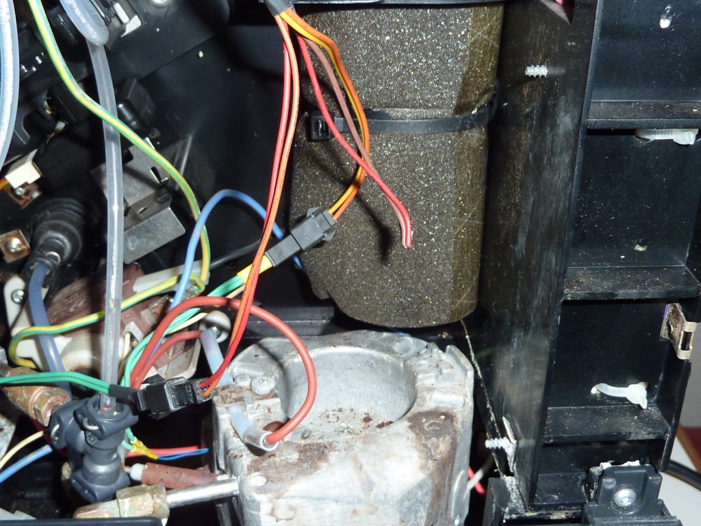 Das abgeschnittene Kabel müsste das vom Reed-Kontakt sein. Würde dazu passen dass die Maschine gestern beim ersten Einschalten den leeren Wassertank nicht angezeigt hat.