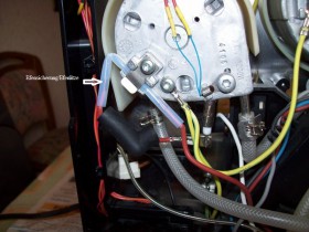 Maschine ausschalten, die beiden Kabel am Erhitzer entfernen und die beiden Kontaktanschlüsse messen. Hier muß ein wert zwischen 40 – 50 Ohm angezeigt werden.