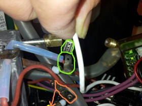 Meine König Creation (Nespresso) hat plötzlich kein Wasser mehr durchgelassen, worauf ich die Maschine zerlegt habe. Der Zulauf der Heizung war völlig verstopft, sodass ich die Heizung stundenlang in Entkalker einlegen musste und immer wieder mit einem Draht gestochert habe, bis der Wasserdurchlauf wieder funktionierte. Danach habe ich die Heizung mit Wasser gereinigt, ein paar Minuten mit dem Föhn getrocknet und wieder eingebaut, jedoch noch nicht am Strom angeschlossen, da ich die gesamte Maschine noch weiter mit unverdünntem Entkalker reinigen wollte. Die Stromversorgung hat ein Y-Stück, wobei zuerst der Anschluss für die Heizung kommt und eine Verzweigung weiter zur Pumpe geht. So habe ich alles bis auf diesen einen Stromstecker für die Heizung verkabelt und die Maschine mit kaltem Wasser durchgespült.