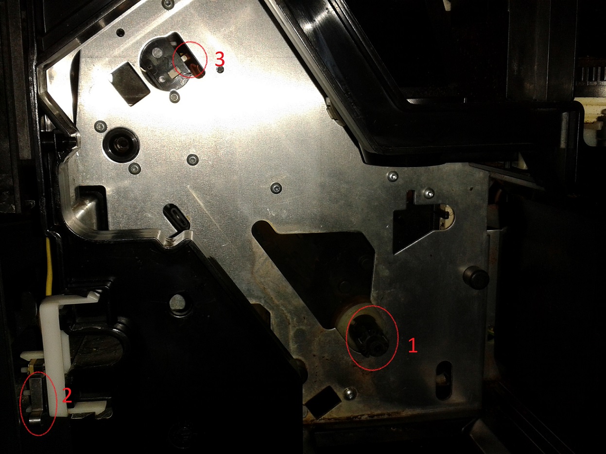 die angesprochenen Mikroschalter befinden sich im Antrieb. Das ist das schwarze große Teil in der Maschine auf dem sich an der Brühgruppenseite das Drainageventil befindet. Wenn Du die Maschine öffnest dann schaust Du von der Wassertankseite aus genau drauf. Es hat einen Deckel der mit zwei Klammern eingeclipst ist. Wird der Deckel abgenommen dann siehst Du die beiden Schalter.