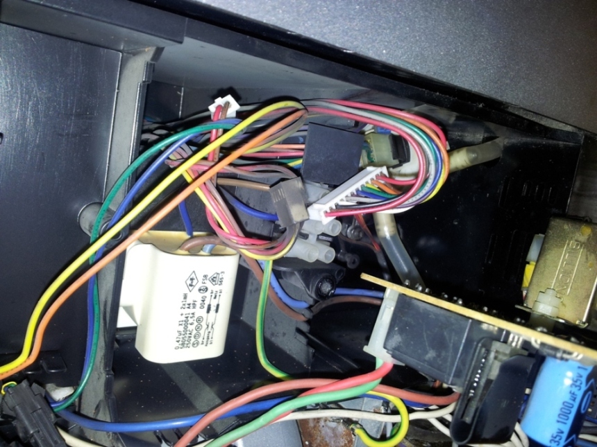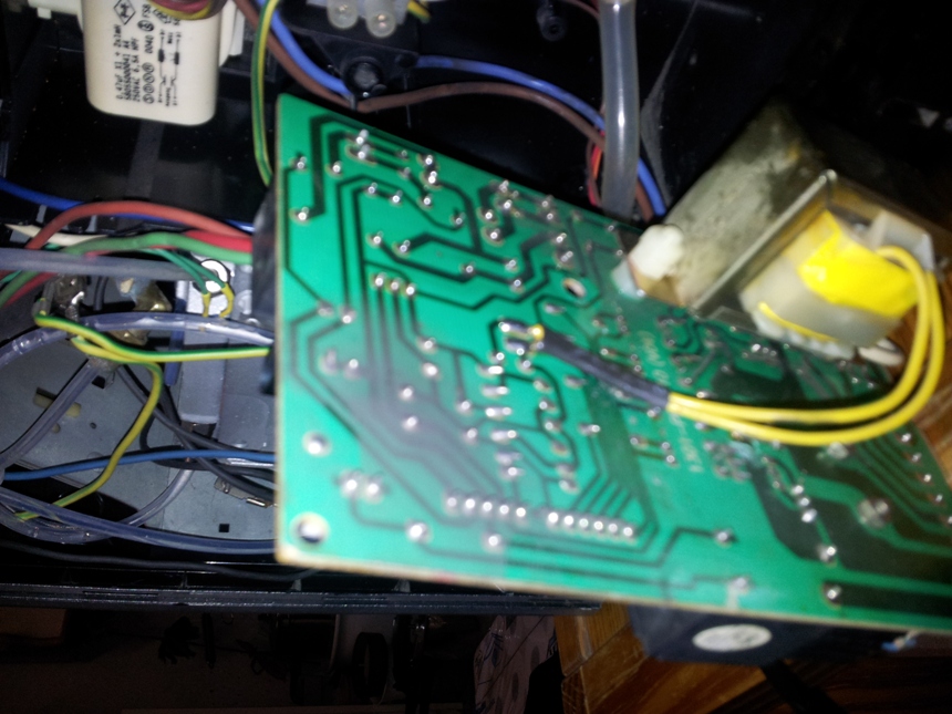Meine Theorie: Der Stecker oben rechts (zweiadrig) ist nicht hundertprozentig fest, die Lötstellen auf der Platine scheinen sich gelöst zu haben... könnte es das sein?