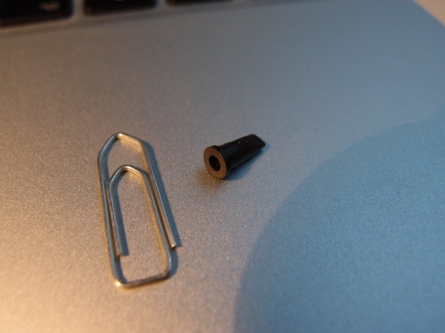 - Nun hat meine Freundin hat den Cappucinatore gestern nach einer solchen "Explosion" den Cappucinatore erneut zerlegt und dabei ein wirklich sehr kleines Gummiteil zu Tage gefördert, von dem ich beim besten Willen nicht herausfinde, wo es hingehört. Es handelt sich um einen kleinen Gummistopfen, ein Ende mit Hohlbohrung, das andere Ende keilförmig zugespitzt. Ich füge Bilder bei (darauf Büroklammer zum Größenvergleich).