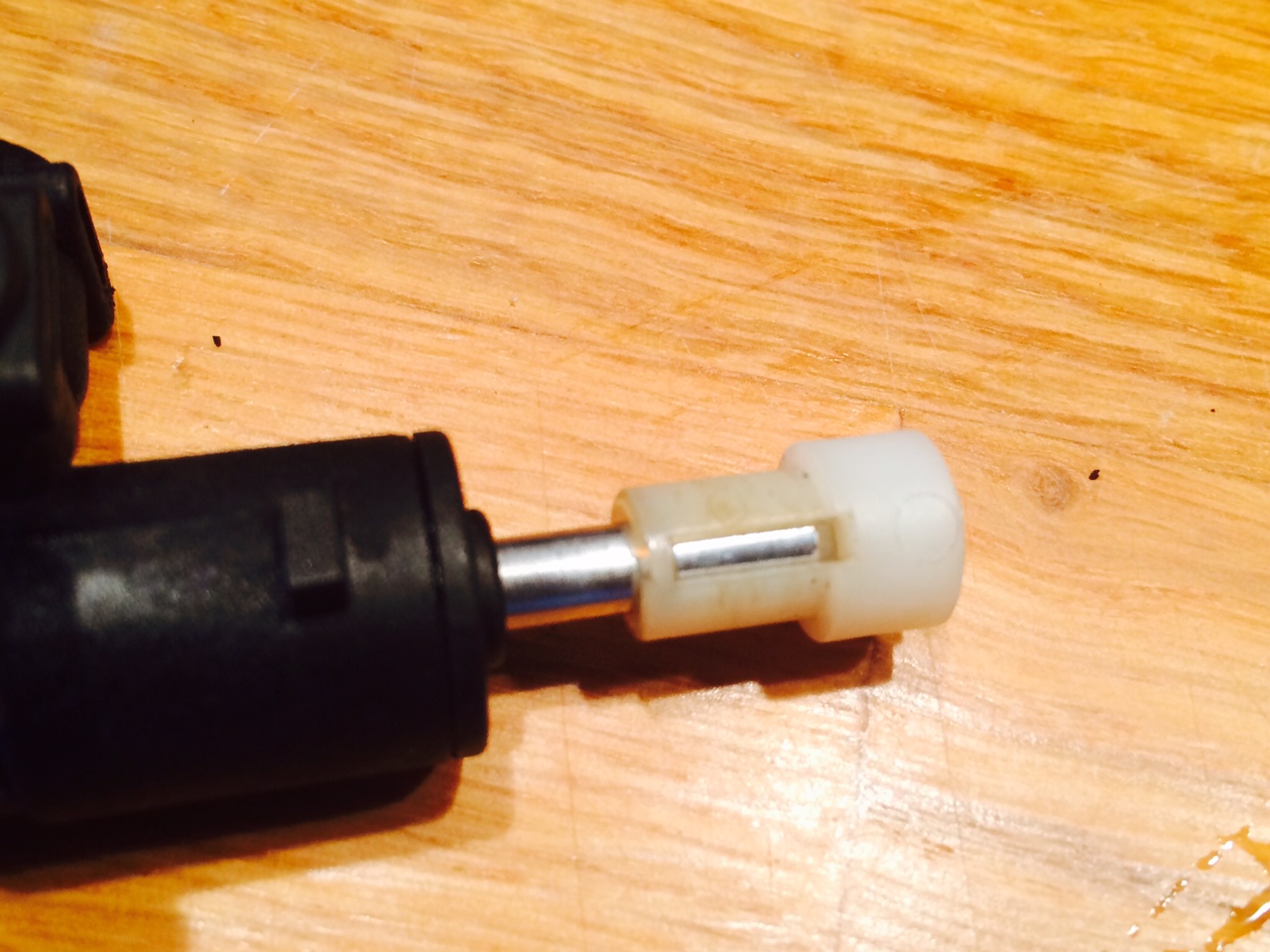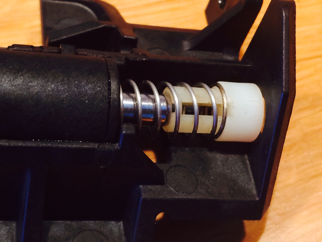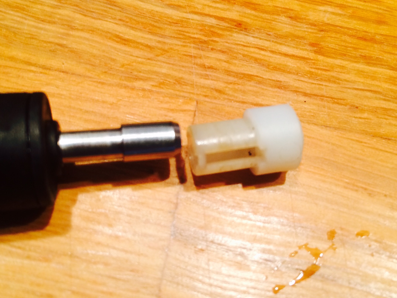 • Der Stopfen sitzt überhaupt nicht fest auf dem Metallstift, sondern wird von der Feder weggedrückt. Ich häng mal 3 Fotos an, die das zeigen. Sollte der Stopfen fest mit dem Metallstift verbunden sein?