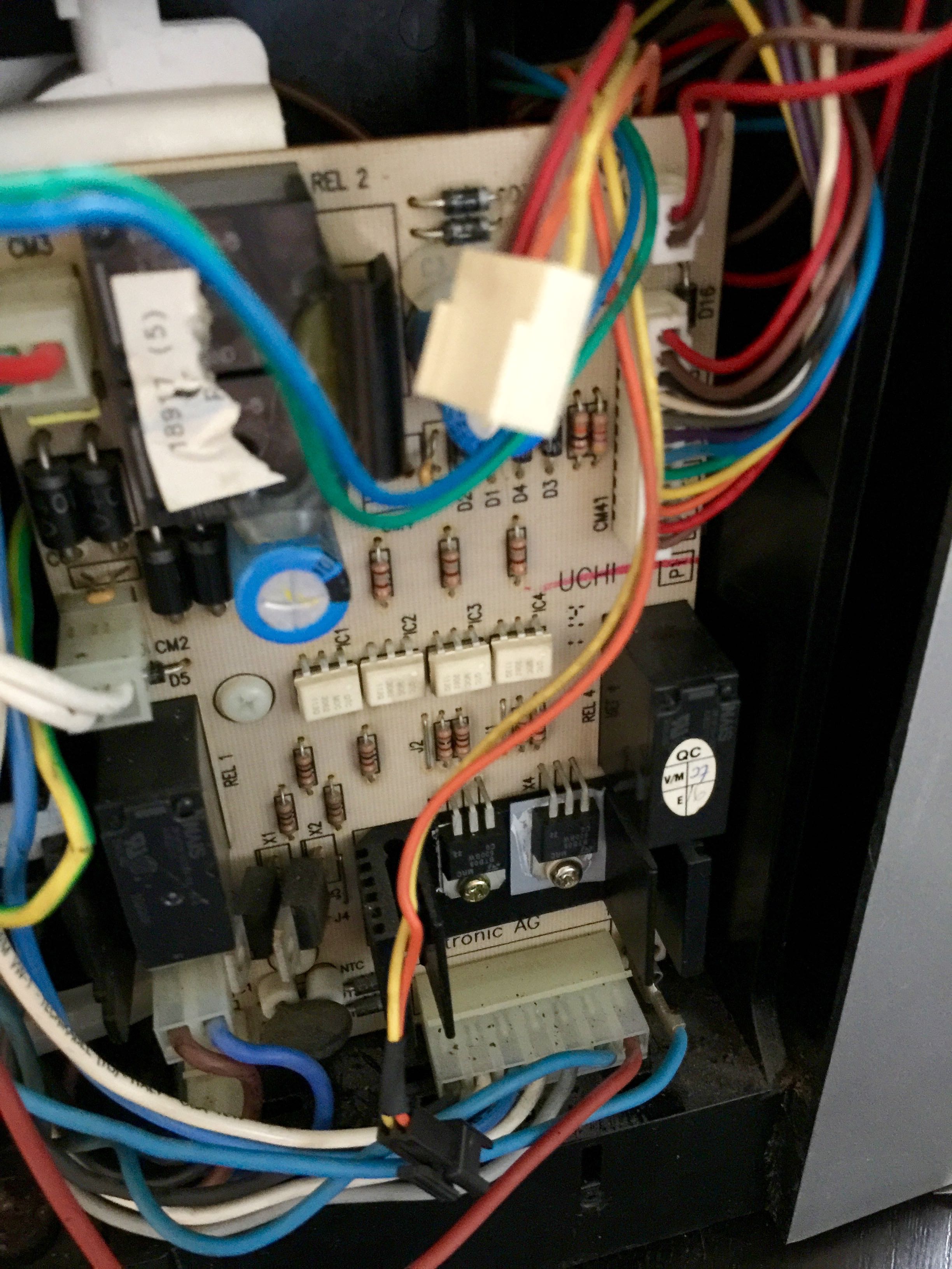Also ein Kabel geht zu dem Omegasensor, der ja direkt auf dem Erhitzer über dem Trafo sitzt, das sehe ich, ist am Anfang ein blaues Kabel, was dann grün wird und dann auf ein blau grünes Kabel geht. Zu dem gelb/orangenen kann ich keinen Gegenpart entdecken, wo soll der denn hingehen/herkommen? Hast Du einen Tip?