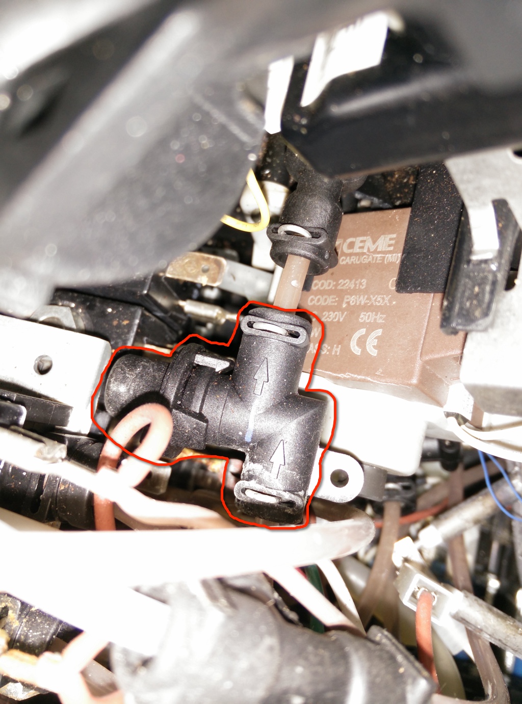 Ist eine X9 und der Schlauch geht dann Richtung Brüheinheit, wenn ich das richtig sehe.