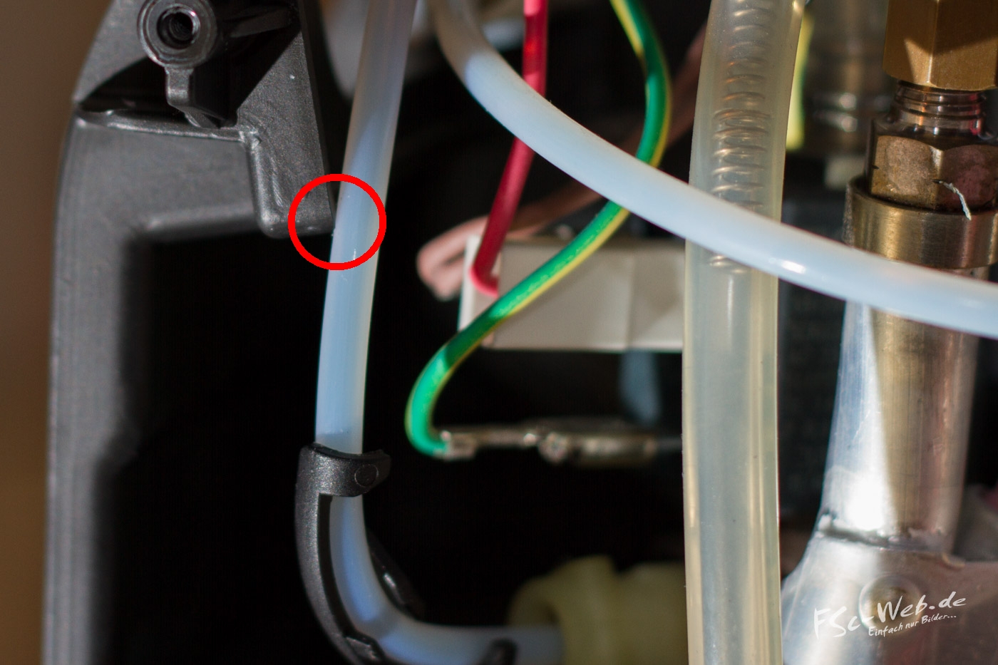 Bei offengelegter Maschine habe ich noch ein paar Stellen entdecket, bei denen in nacher Zukunft sich der eine oder ander Schlauch verabschiedet hätte. Anbei zwei Fotos:
