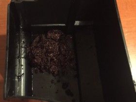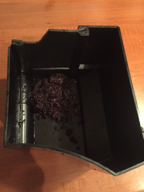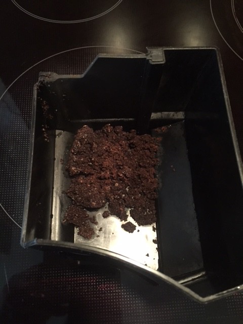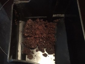 ( Im Moment habe ich nach ein paar Testläufen feuchtes Mahlgut im Auffangbehälter )