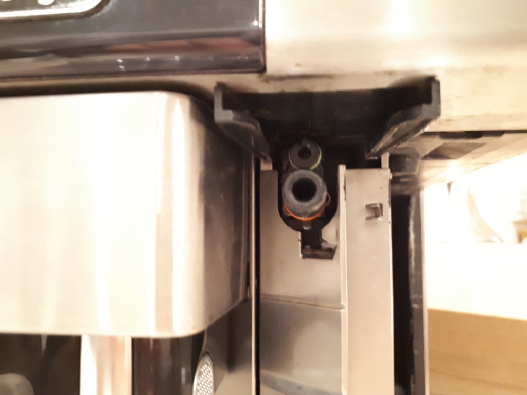 Ich habe den Milchschaumbehälter angebaut und wollte mit Wasser einfach mal im Testmodus heißes Wasser erzeugen.