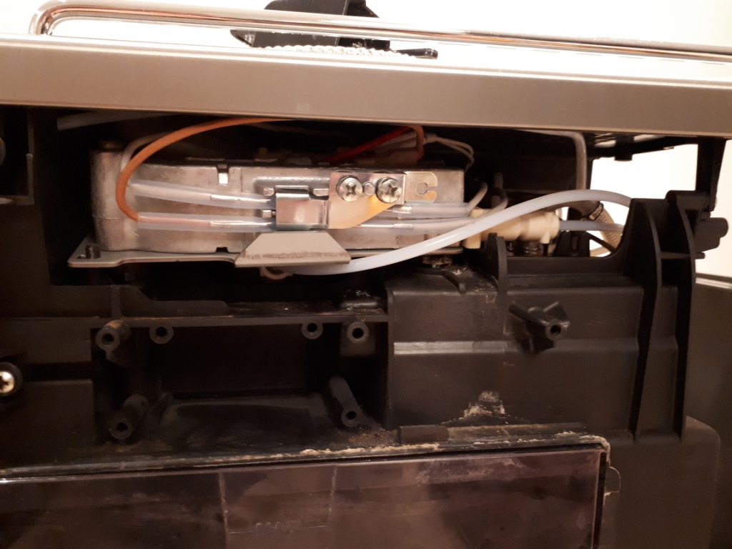 • Zuerst wird das Wasser im Thermoblock oben erhitzt, bei Kaffeebezug wird nur der genutzt. Bei Dampf öffnet das hintere Magnetventil und das vorerhitzte Wasser (ca 96°C) wird nochmal im hufeisenförmigen Dampferhitzer mit Temperaturen von 130°C-170°C (abhängig von der Softwareversion) erhitzt.