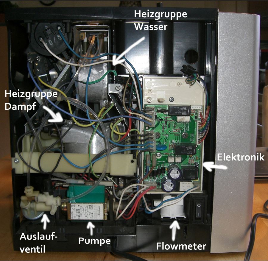 So nun aber zu meinem aktuellen Problem. Ich habe hier eine Jura S9 Platin aus dem Jahr 2008 mit der Modellnummer 13361. Das Gerät hat die Leistungselektronik THMX-PRD-15.