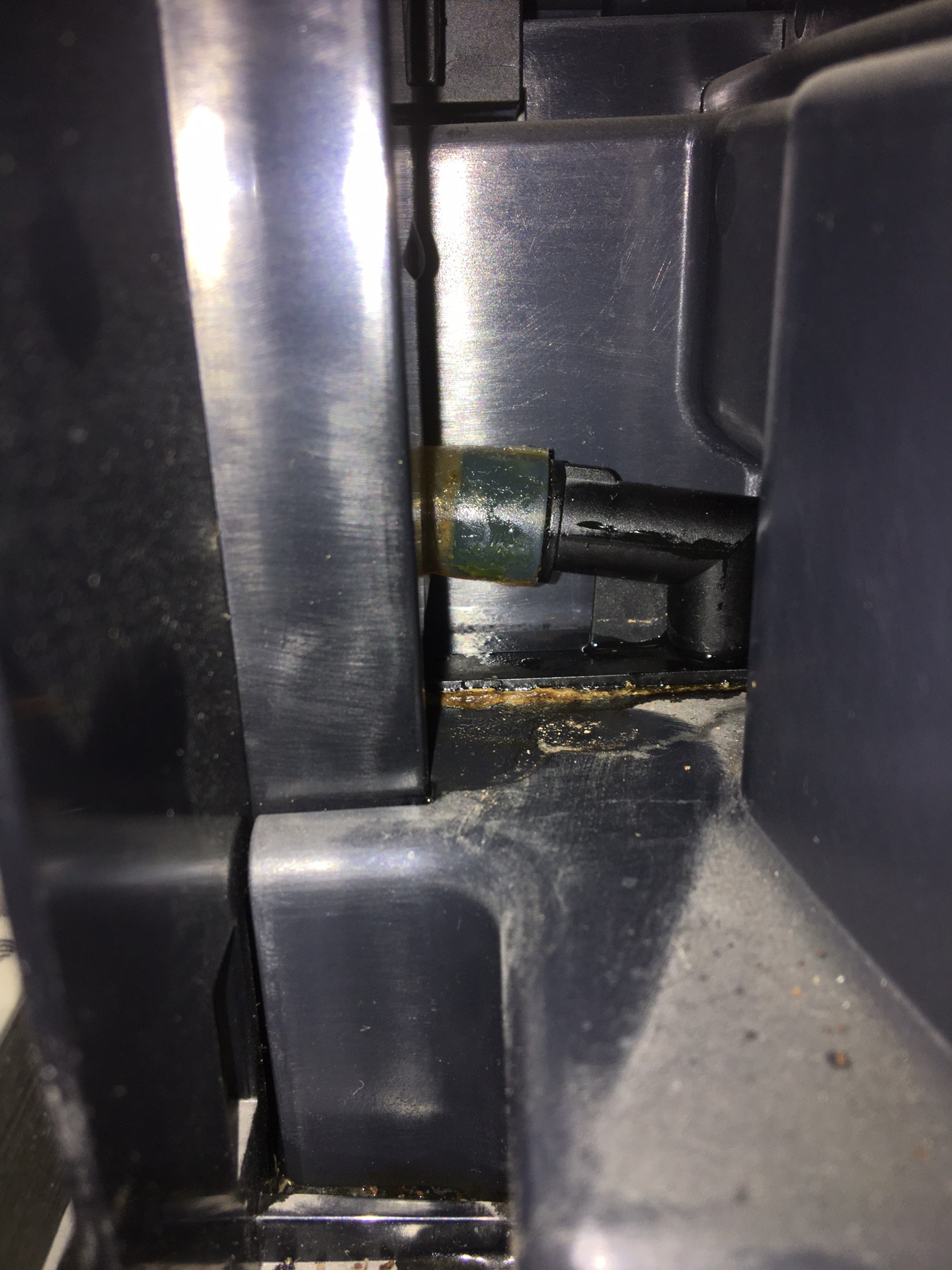 4. Da ich keinen Wasserverlust über der "Schale" entdecken konnte, kann der Wasserverlust am Drainageventil entstehen? Es sind auch Wasserspuren im Innern zu erkennen, da wo Wasser in die Brüheinheit reinläuft. Und auch an anderen Stellen (ich kann Fotos posten wenn das zur Fehlereingrenzung hilft).
